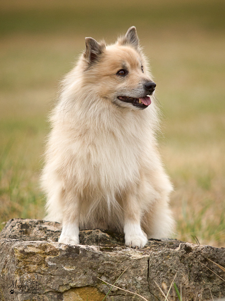 Spurðann is a sweet little guy a afraid of nothing. When we first introduced him to the other dogs, he growled at them, he was already trying to establishing dominance! He is very energetic and loves to play all the time. He gets along good with the other dogs, but Snotra and Nella are his favorite, where ever they are, Spurðann sure is to be there too. He is such a character full of fun and personality. He is very typical for the breed, can jump and climb just about anything he always sits on the highest point to look out, if it is in the house or outside. He is very alert and high energy for play, walks, run or work, but calm when in the house resting. He always has a happy smile.